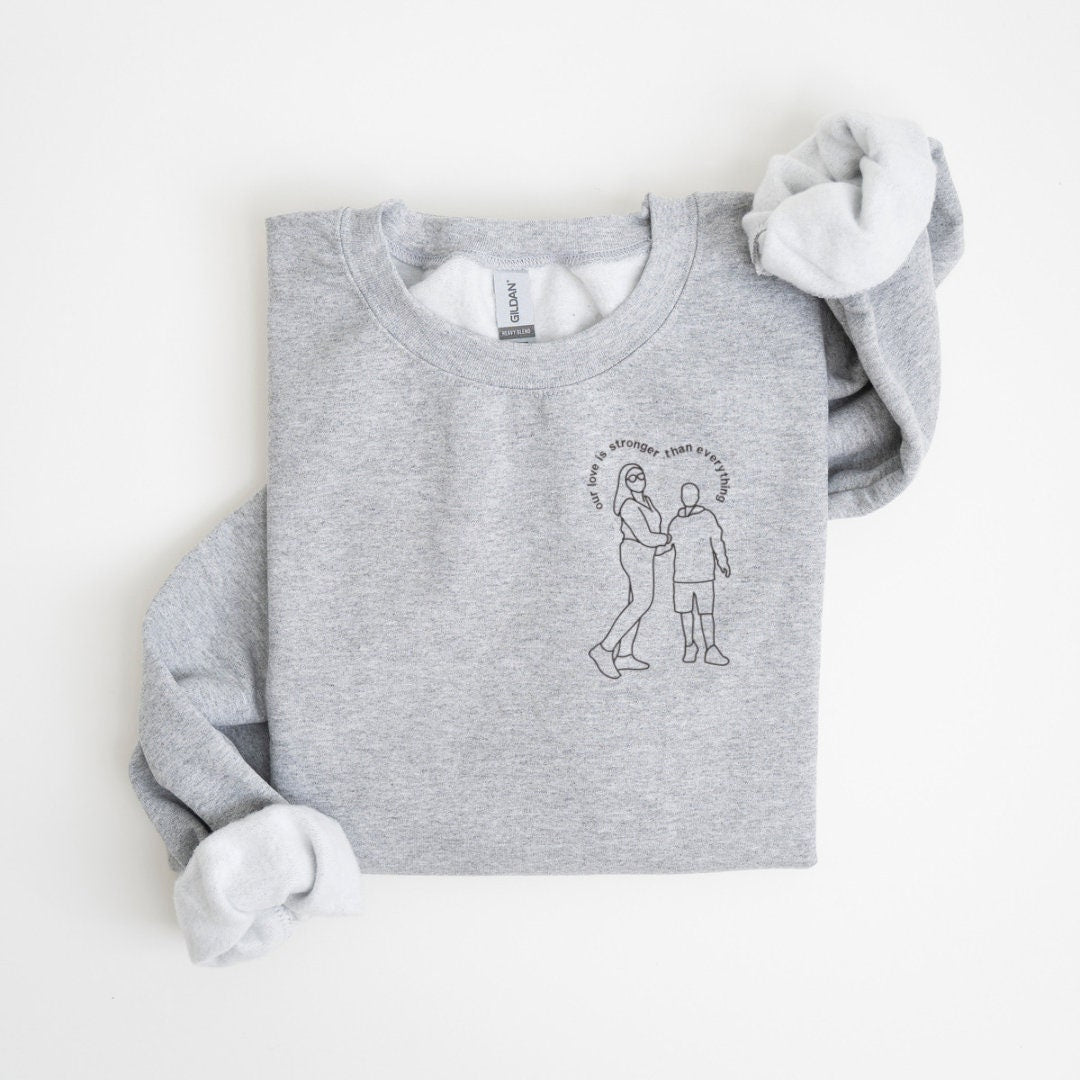 This personalized embroidered sweatshirt features a custom outline portrait created from your photo, stitched with beautiful clean line art and optional initials on the sleeve.