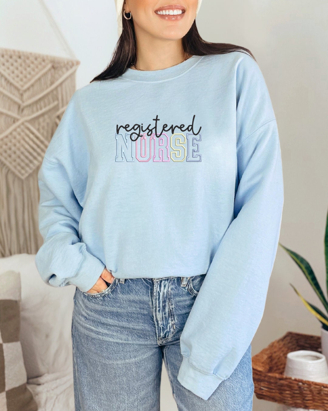 Celebrate the heart of healthcare with this cozy pastel Registered Nurse embroidered crewneck — designed for nurses who care with passion, strength, and compassion.